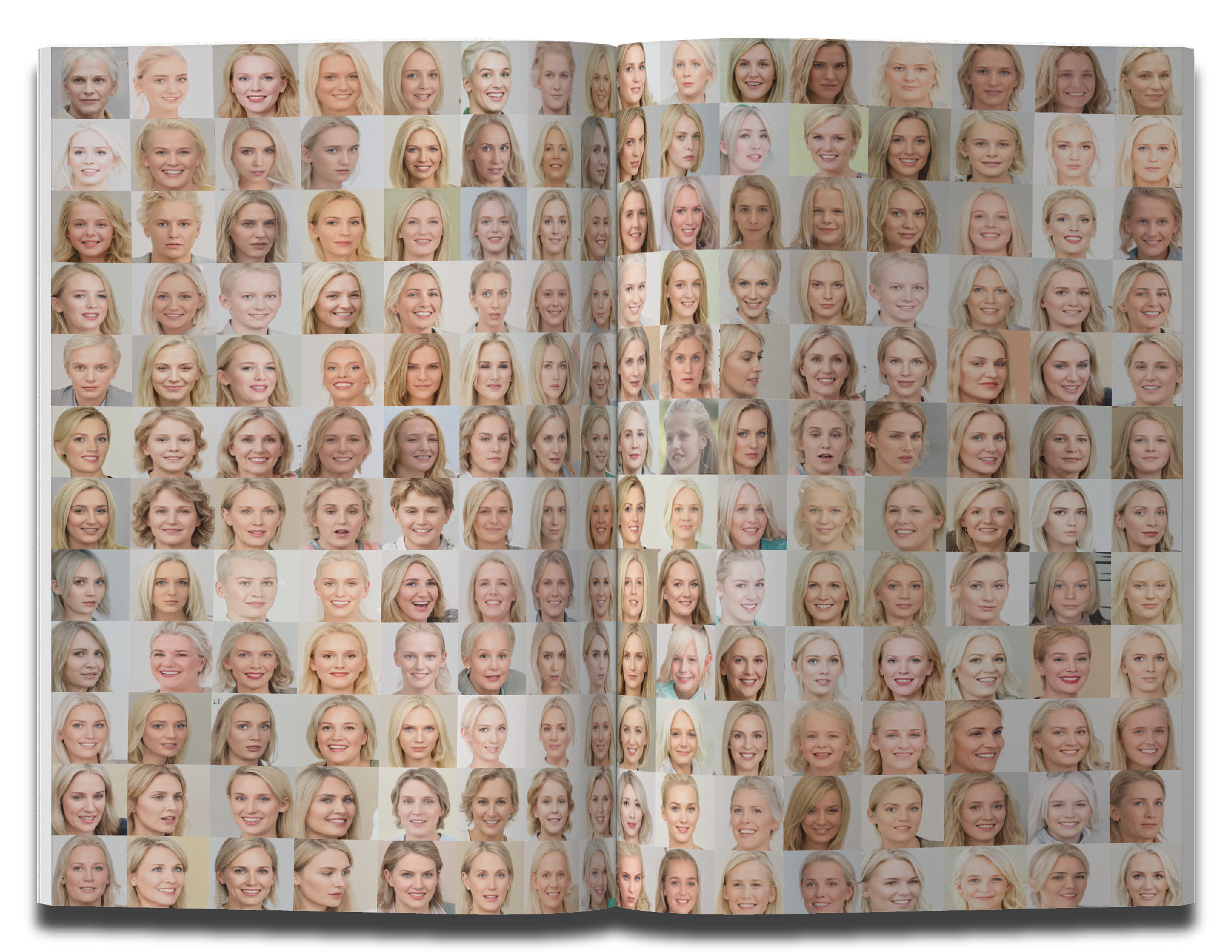 Propuesta editorial experimental, creación de un “catálogo” de rostros humanos generados por IA (inteligencia artificial). Materializando el concepto de la transformación que sufre la identidad individual en Internet.